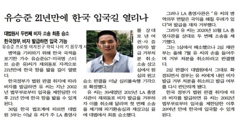 본명은 스티브 승 준 유입니다.
